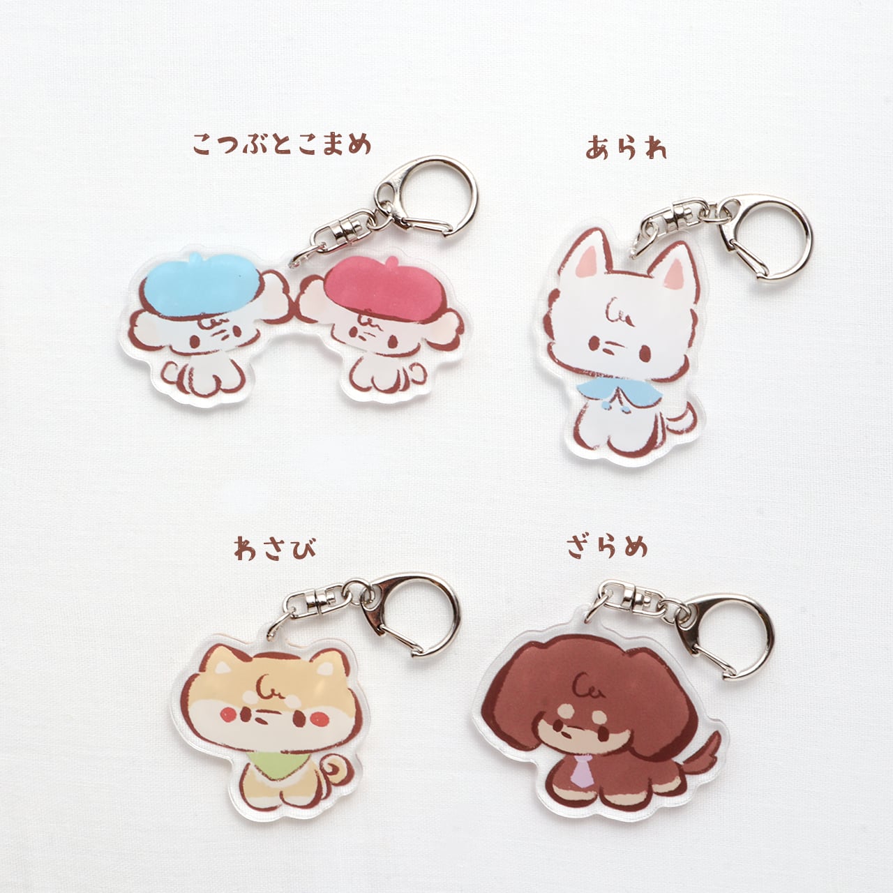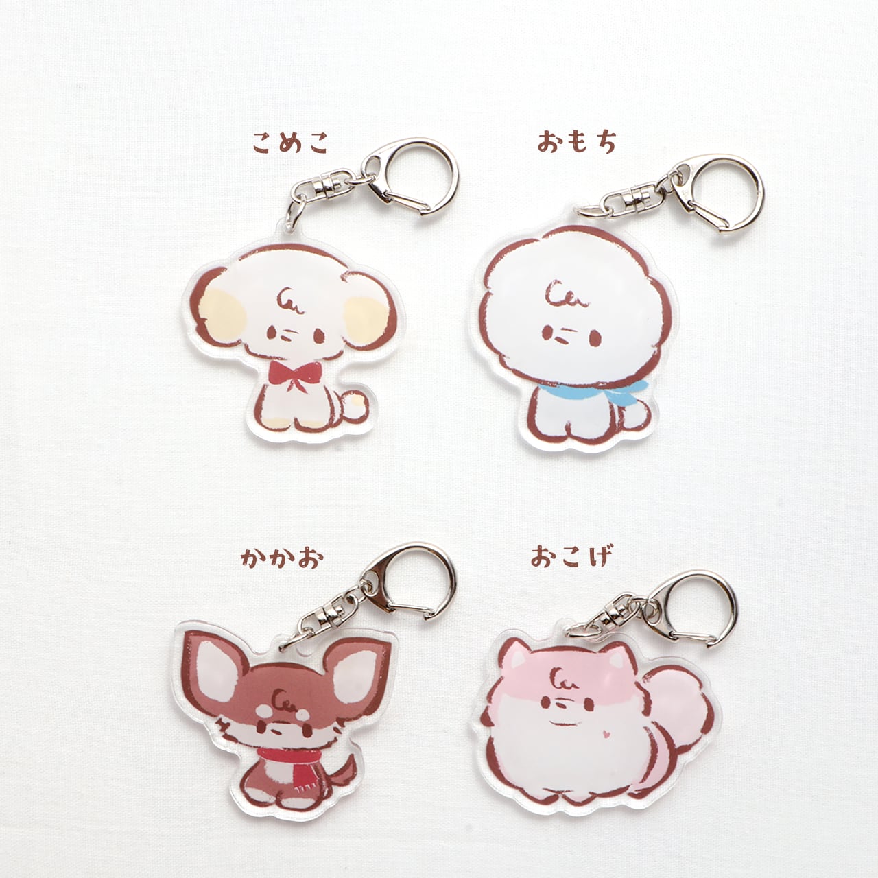 こめこたちのアクリルキーホルダーです。