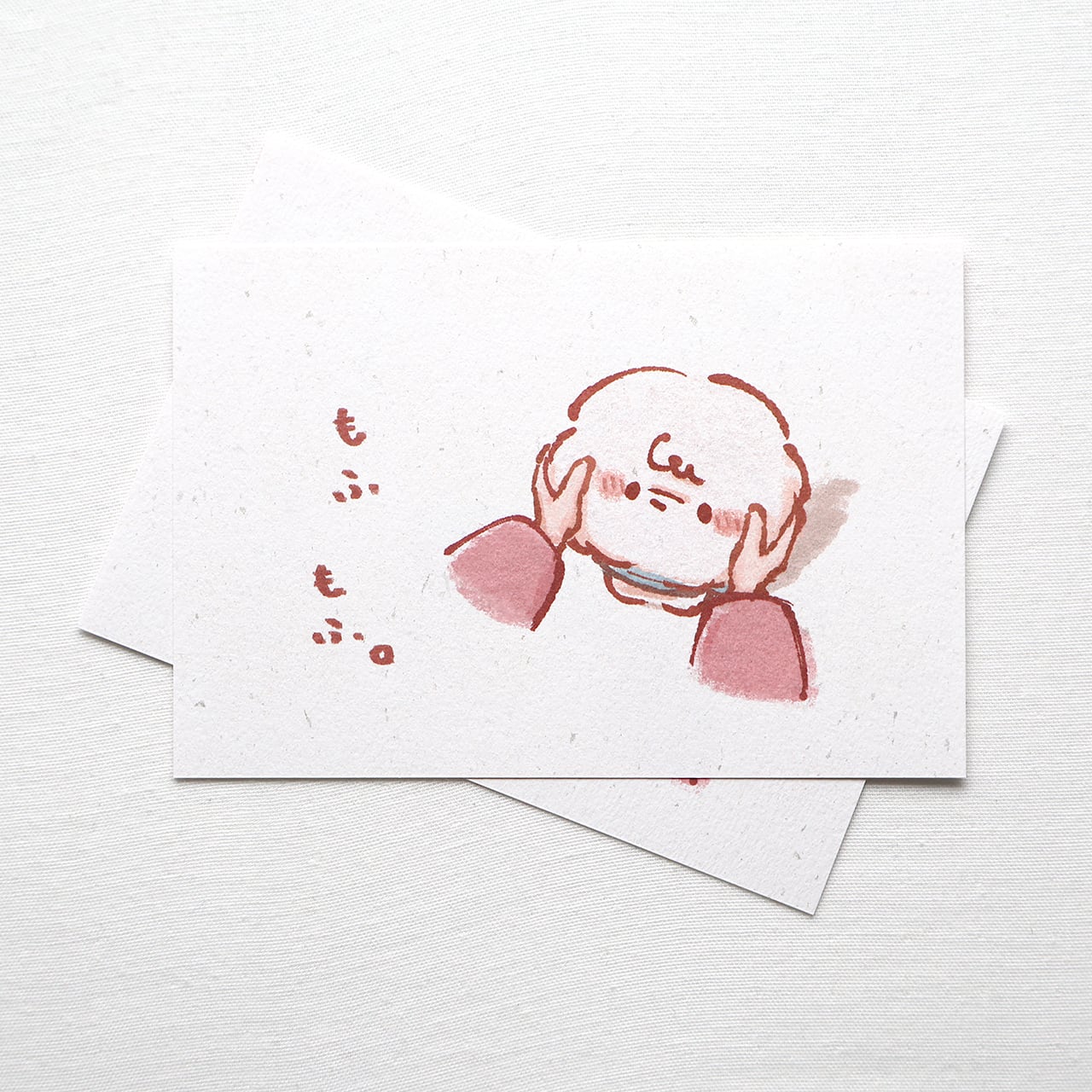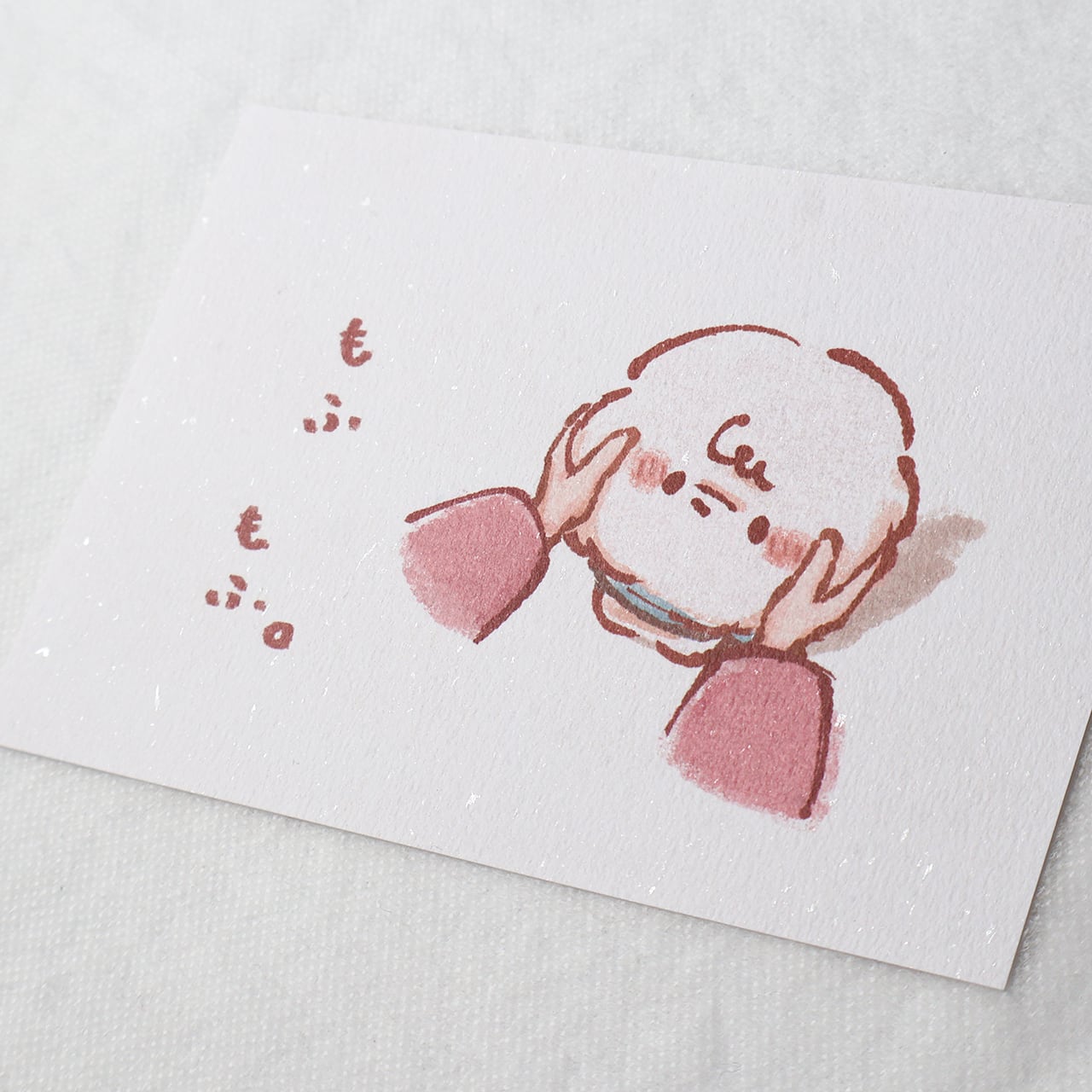 やみつきになるもふもふ感。 そんなおもちを描きました。 凹凸のある優しい質感に うっすらときらきら光るパウダーが散りばめている ポストカードです。 サイズ:約100mm×148mm