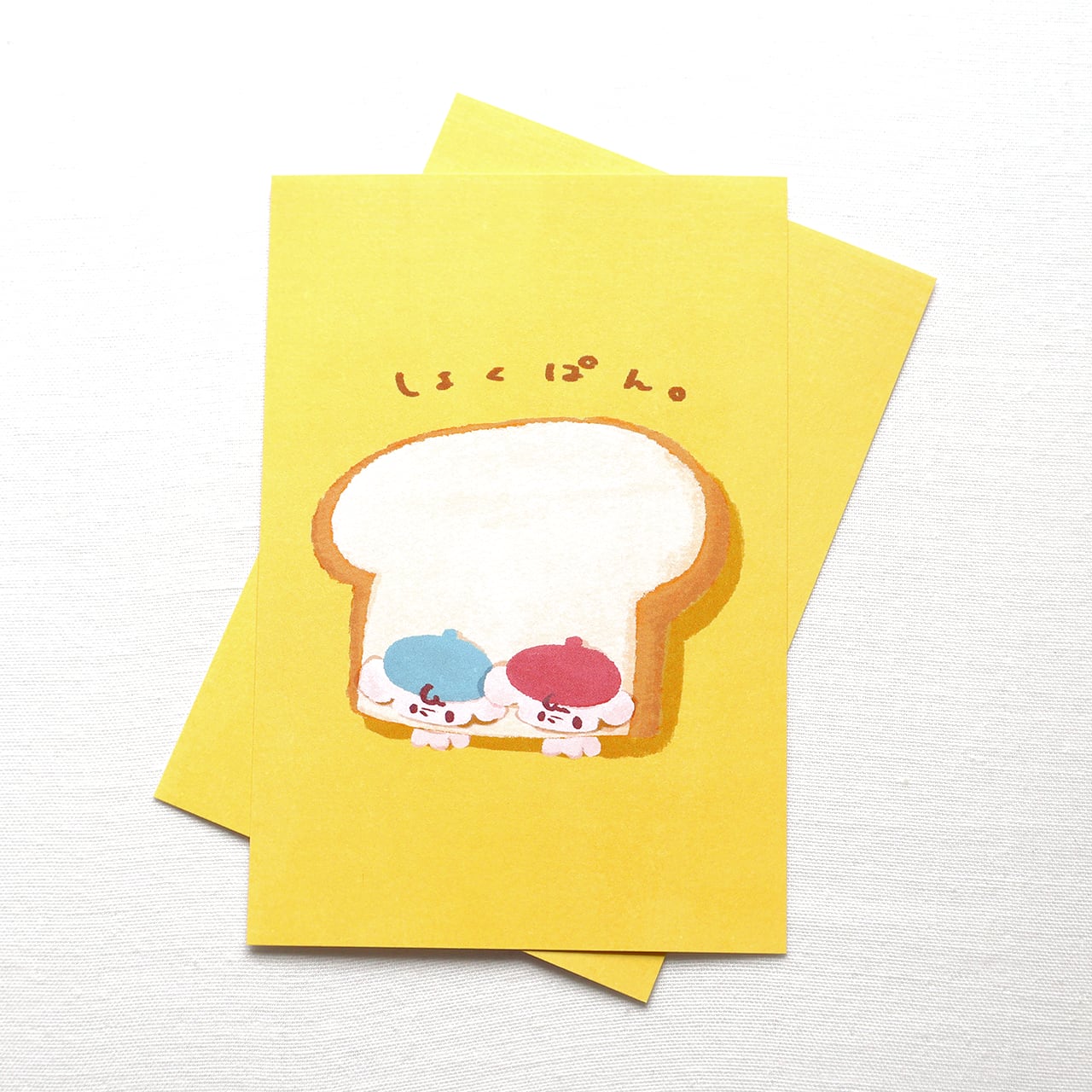 食ぱんになりきってみたよ。 どう?似合ってる? 紙の優しい質感や風合いを 感じられるポストカードです。 サイズ:約100mm×148mm