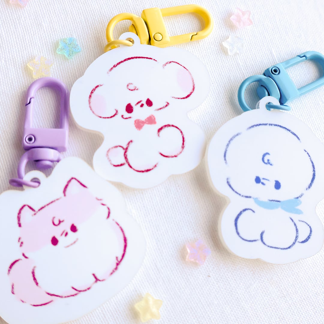 カラビナがカラフルでおもちゃみたい。 そんなアクリルキーホルダーです。 全3種類。上のタブから種類をお選びください。 (画像2枚目参照) 表側にデザインが印刷されていて ツヤツヤする加工を施しています。 少し小ぶりのサイズなのが 作者のお気に入りポイントです。 色選びも楽しみながら ぜひお迎えしてね。 サイズ:約4~5cm(カラビナを除いた場合) ※種類によって大きさは異なります。 ※セット販売ではございません。