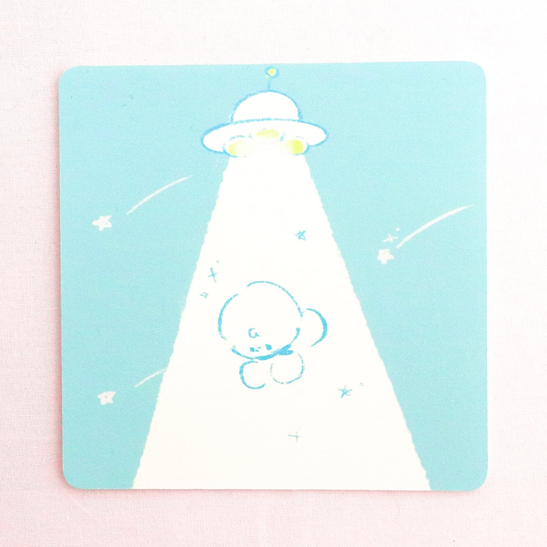 あれ? 連れていかれちゃう? 紙の優しい質感や風合いを 感じられるスクエアタイプの ポストカードです。 サイズ:約120mm×120mm